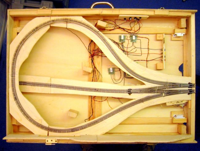 Ein drittes Relais polt automatisch die abzweigende Strecke um, je nachdem, ob ein Zug in den Abzweig fährt oder heraus. Ein Anfahr- und Bremsbaustein sorgt dafür, dass die Züge nicht ruckartig anhalten, sondern an den Signalen sanft verzögern und beschleunigen.